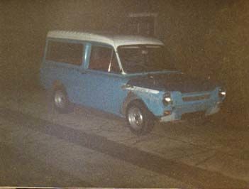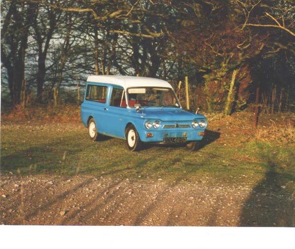So the Imp van was finally on the road , cost about £150 in total including purchase price , The borked original engine was probably the reason for scrappage but the breakers yard had a few Imps there so an engine from a 63 Imp was shoved in along with a transaxle from a 74 Imp . I bought a few rattle cans in the fetching shade of caribbean blue it was resprayed in and sploshed a thin coat on the front, I say resprayed but spray didnt spring to mind , more of " applied carefully using a yard brush " , the roof was especially bad , so much so that greenery was sprouting in the paint grooves .