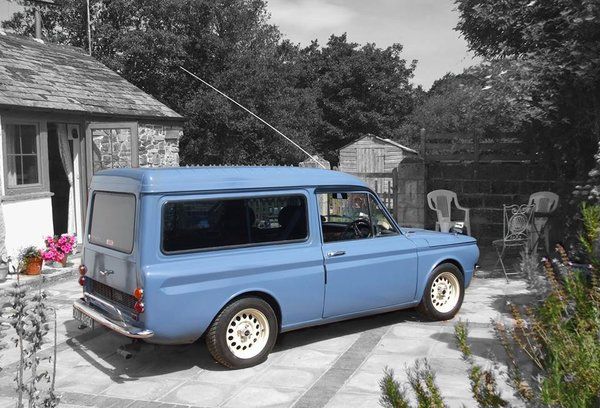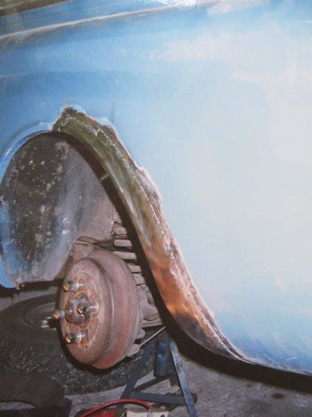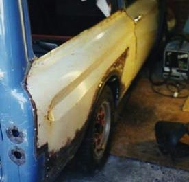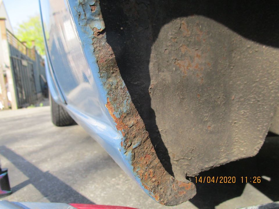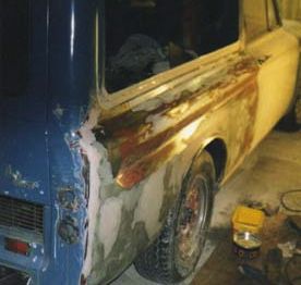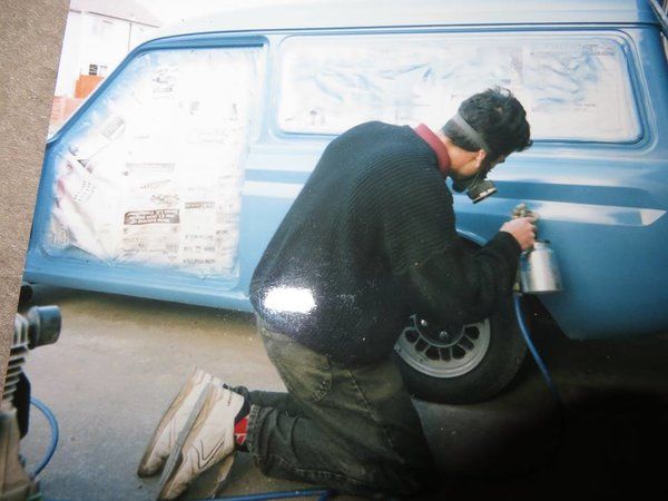 Van was stripped as best i could and sanded down , dents were kind of smoothed out and finally spraying commenced in the original colour of Bermuda blue .