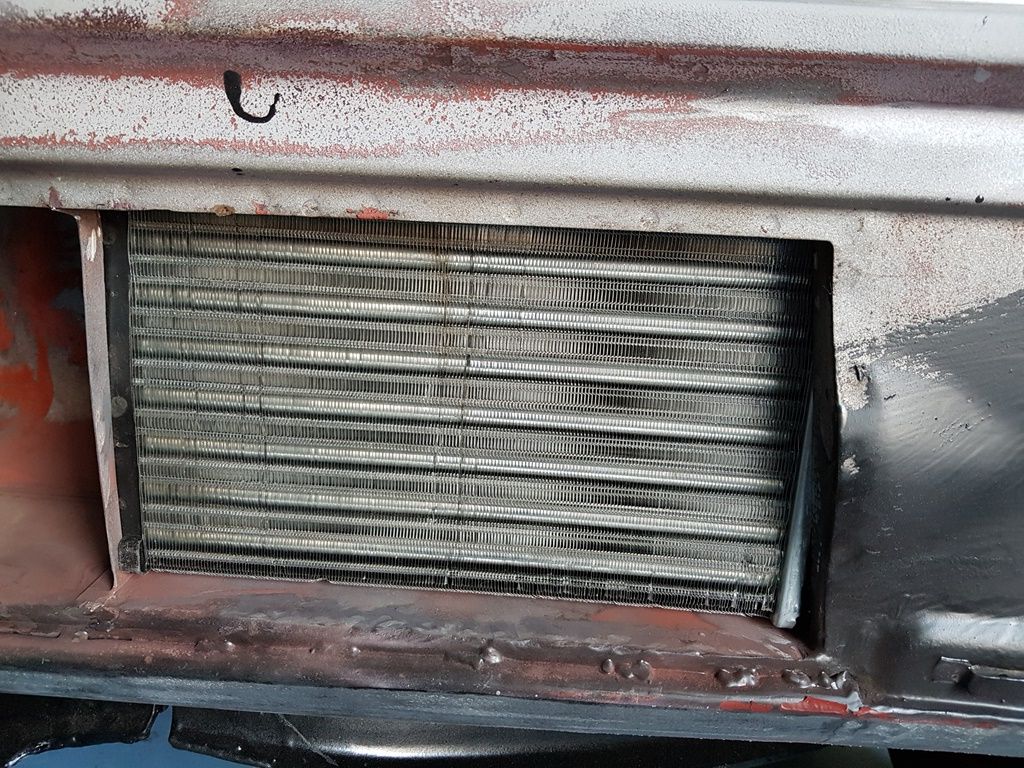 Anyway in the mean time I thought id try an auxiliary front rad - well actually just an Imp heater matrix fitted into the front air box .