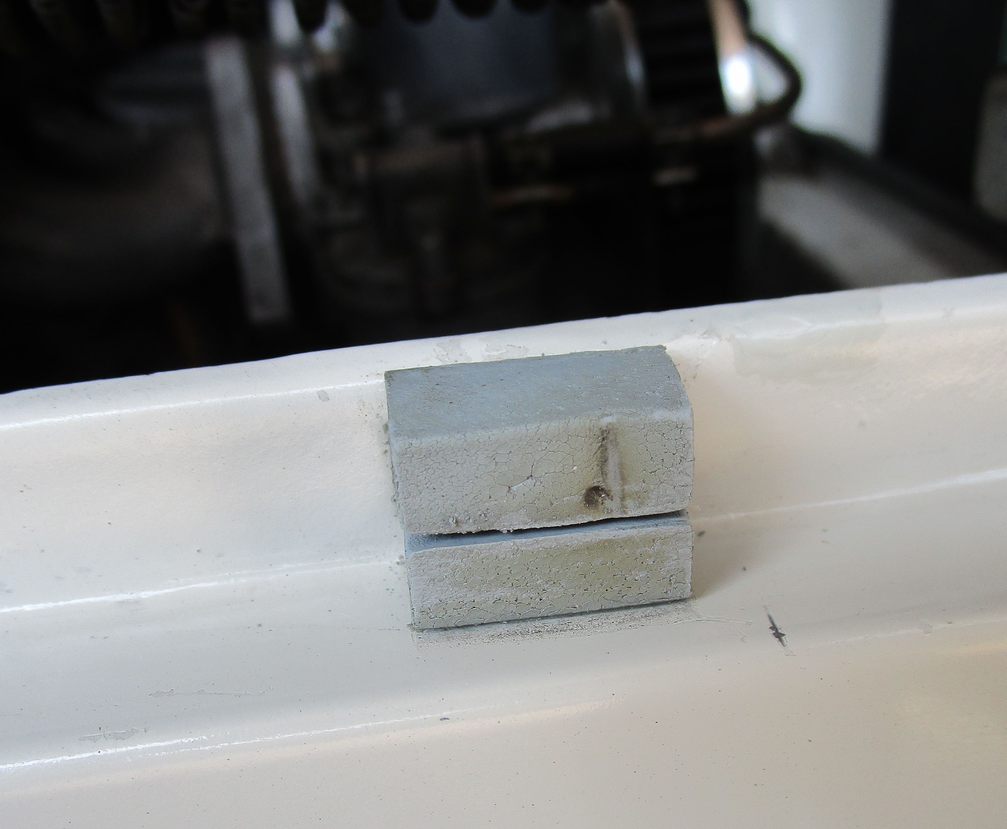 For the top ones i fitted larger buffers then cut the legs off the old one and stuck them on the engine lid .