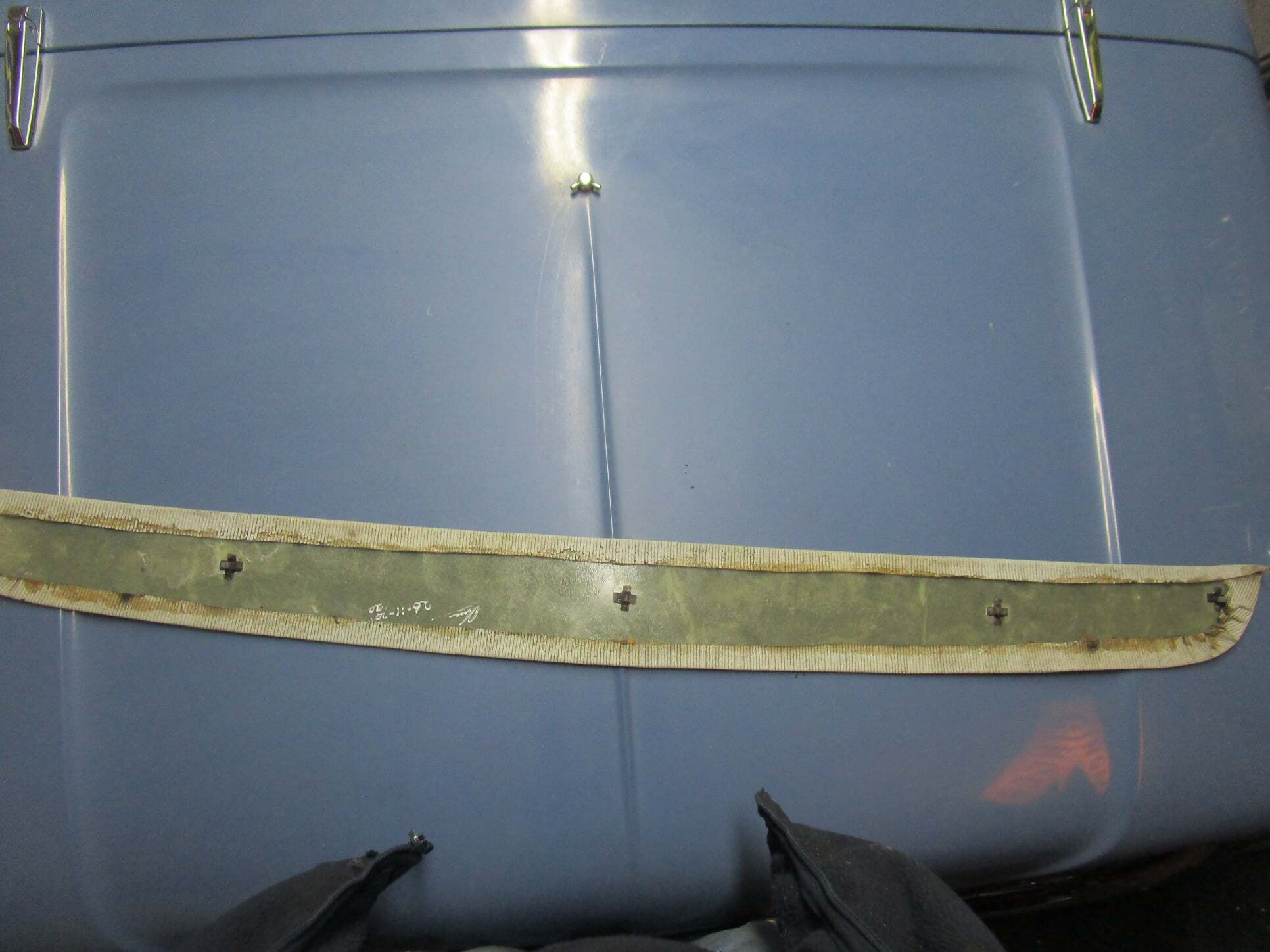 Repaired the rear roof panel , headining was coming off and the hardboard was warped quite bad .