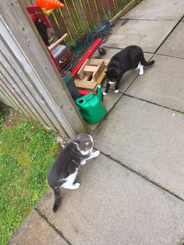 After the poor little tike (on left) got lost for a week and then forund again isnide the soffets of a neighbours house Odin is back out and about.
