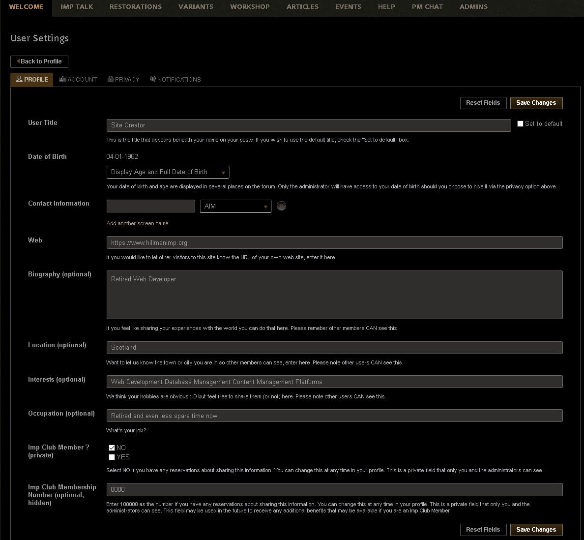 - USER volunteered information such as biography, occupation, signature lines are all viewable by GUEST access
