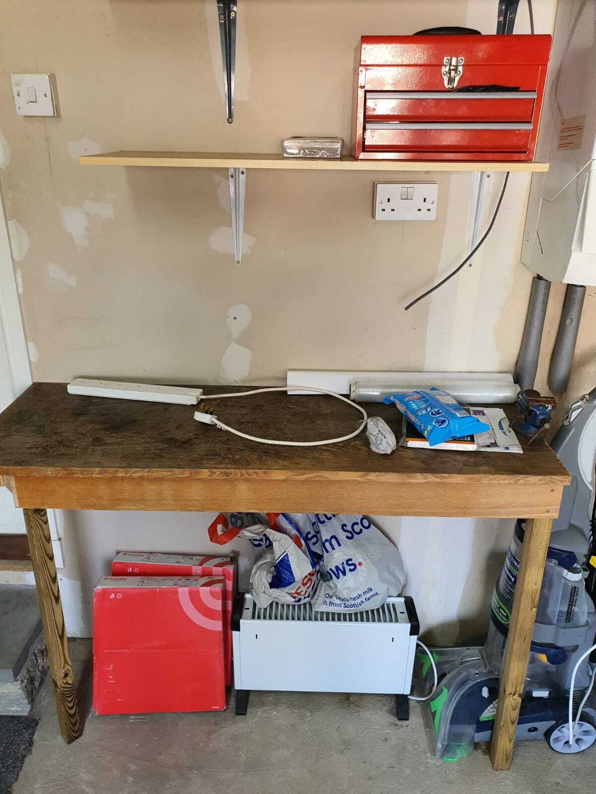 Now re-purposed into two raised workbenches and the 4 ight angled legs turned into shelves, no point wasting good stuff