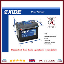 Battery fits HILLMAN IMP 64 to 67 Exide 078 540A 62Ah 4Yr Warranty 242x175x190