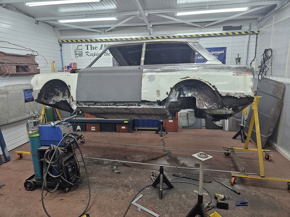 The drivers side was filmes so thats the passenger side now done, middle sill plus box section repairs, rear of inner wheel tub, spring turret and cone all repaired.