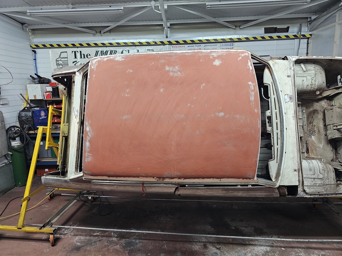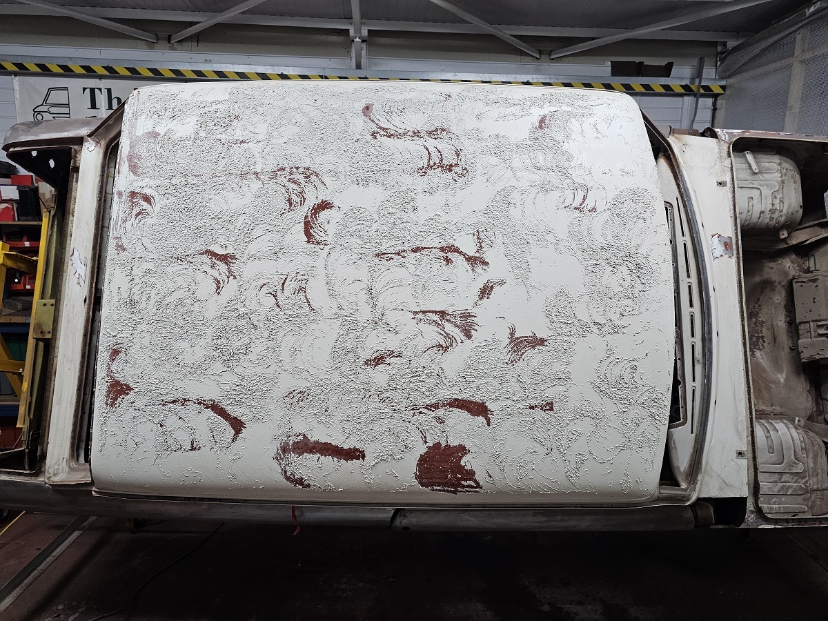 The car had been repainted several times, the olriginal grey and another 2 coats of white both differnt shades.