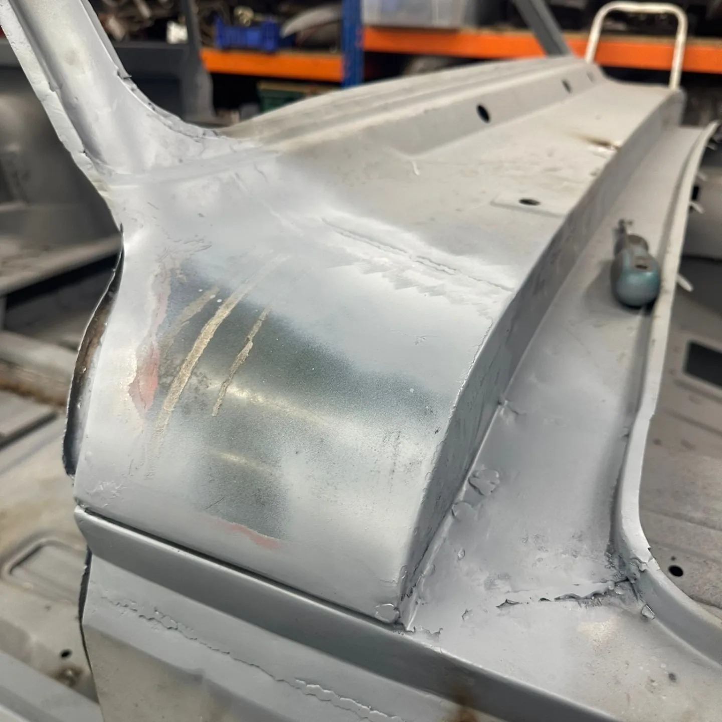 This week work has been flat out on Chris patten #race imp #shell , after fitting new inner,centre and outer sill on the driver side it was time for a half rear wing from # Ex-pressed Steel Panels to go on once the outer rear wheel tub was repaired and the inner rear wing , also we let a section of scuttle and little bit of the pillar in from a donor shell ,funny thing is the donor bit was like new inside due to having been waxed , some roof gutter repairs as well its amazing what the paint was hiding on this car as Chris only bought it a year or so ago as a restored car , 1 persons idea of a restoration is to fill all the rust holes and bodge it up , we also had a visit from #imposter the 1 and only in the world we are told for some box section to mount the seats the car has been off the road for many years but is now getting close to its return , I will keep you all posted when pete is finally finished , have a good weekend all and stay safe at them firework displays