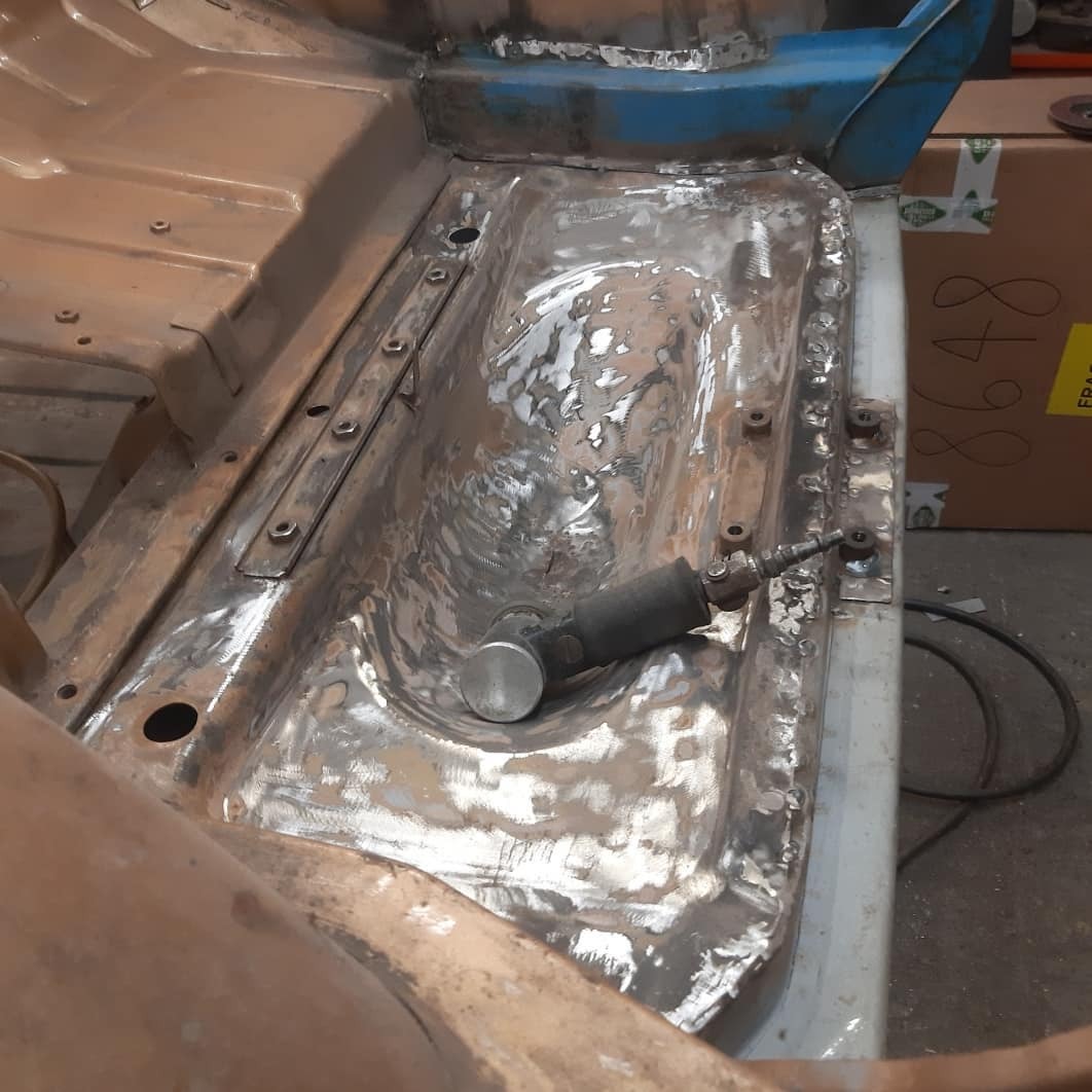 Front floor section in and 2nd chassis leg it's starting to come together now . The rear of the car is just about finished just need to fit s battery tray and clean a few welds back