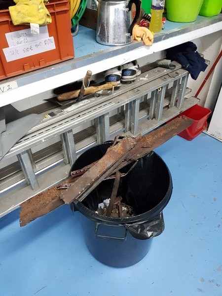 Before the shell gets media blasted I was looking to get as much cutout as possible, especially in corners as the harsh media will save me loads of times finding rotted spots that on surface look OK and of course give me a great base for epoxy and prep. The outer skin will be soda blasted, not media blasted so will need a lot more prep by hand.