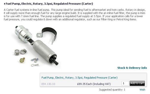 In addition the pump needs safety interlocks so the pump cannot run when the engine is not running (link to oil pressure sender) and of course a inertia cutout switch in case of a bump.