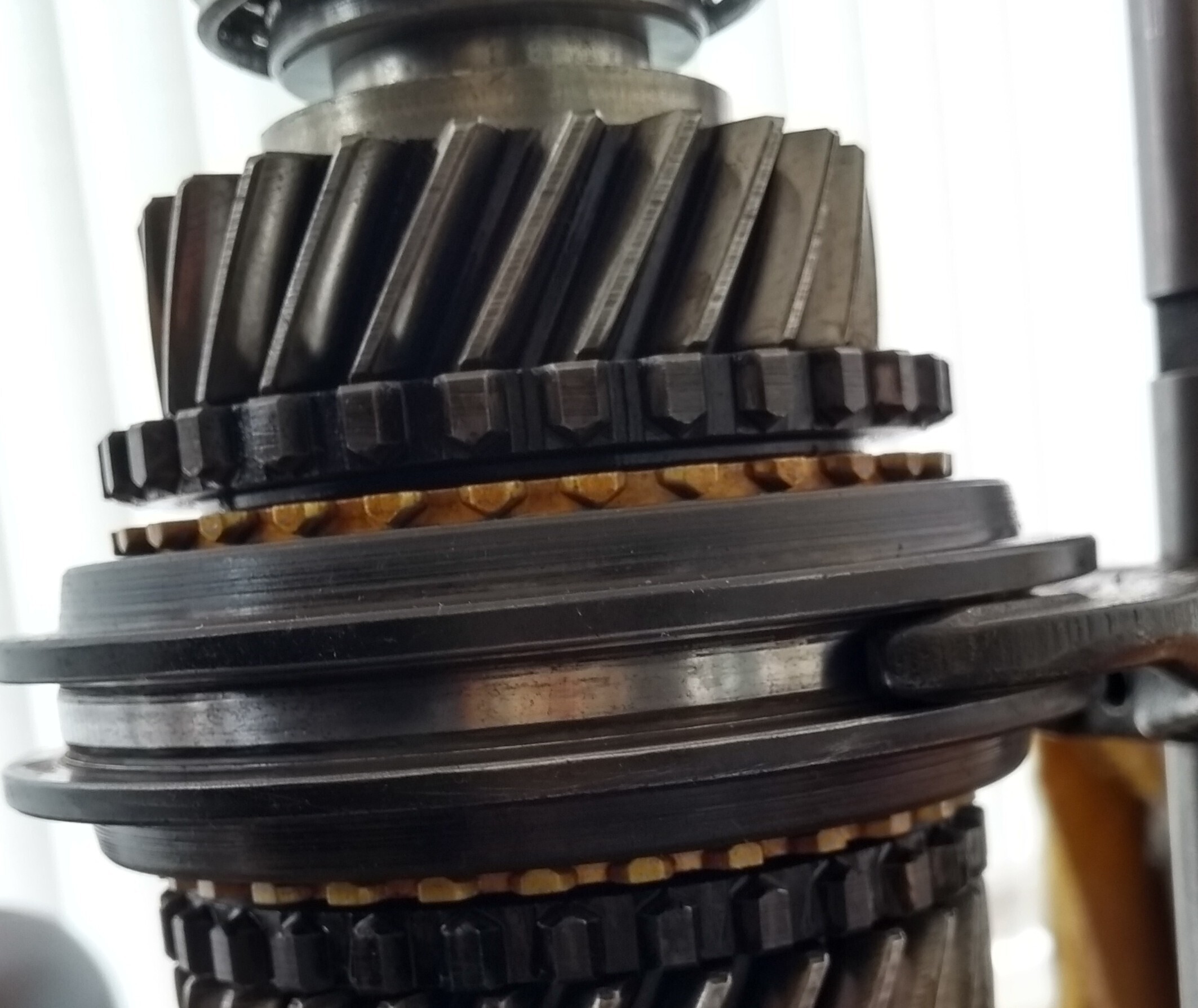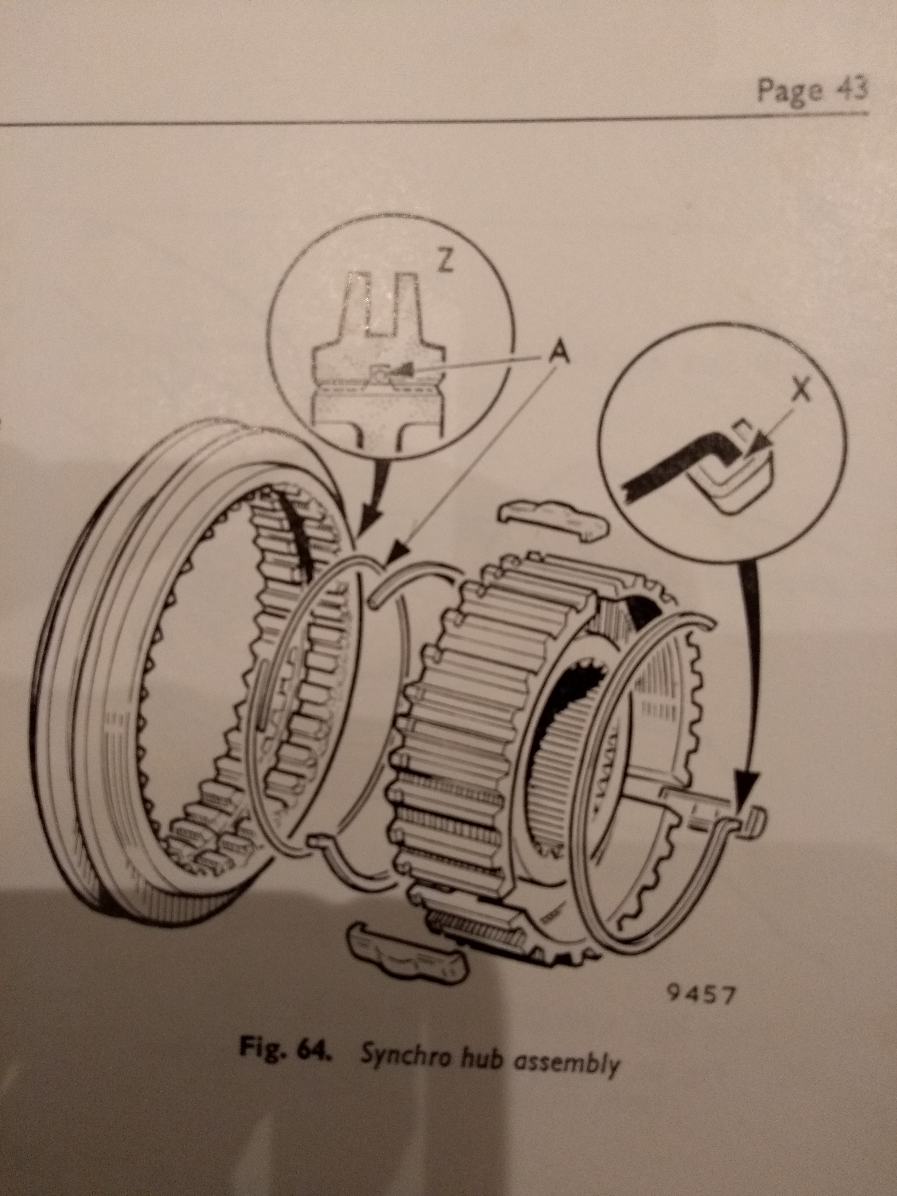 On the later synchro the sliding keys don't have springs and balls they have an internal grove in the bulk ring ,a thin snap ring type spring fits in it this is to hold it in place while you fit the 3sliding keys