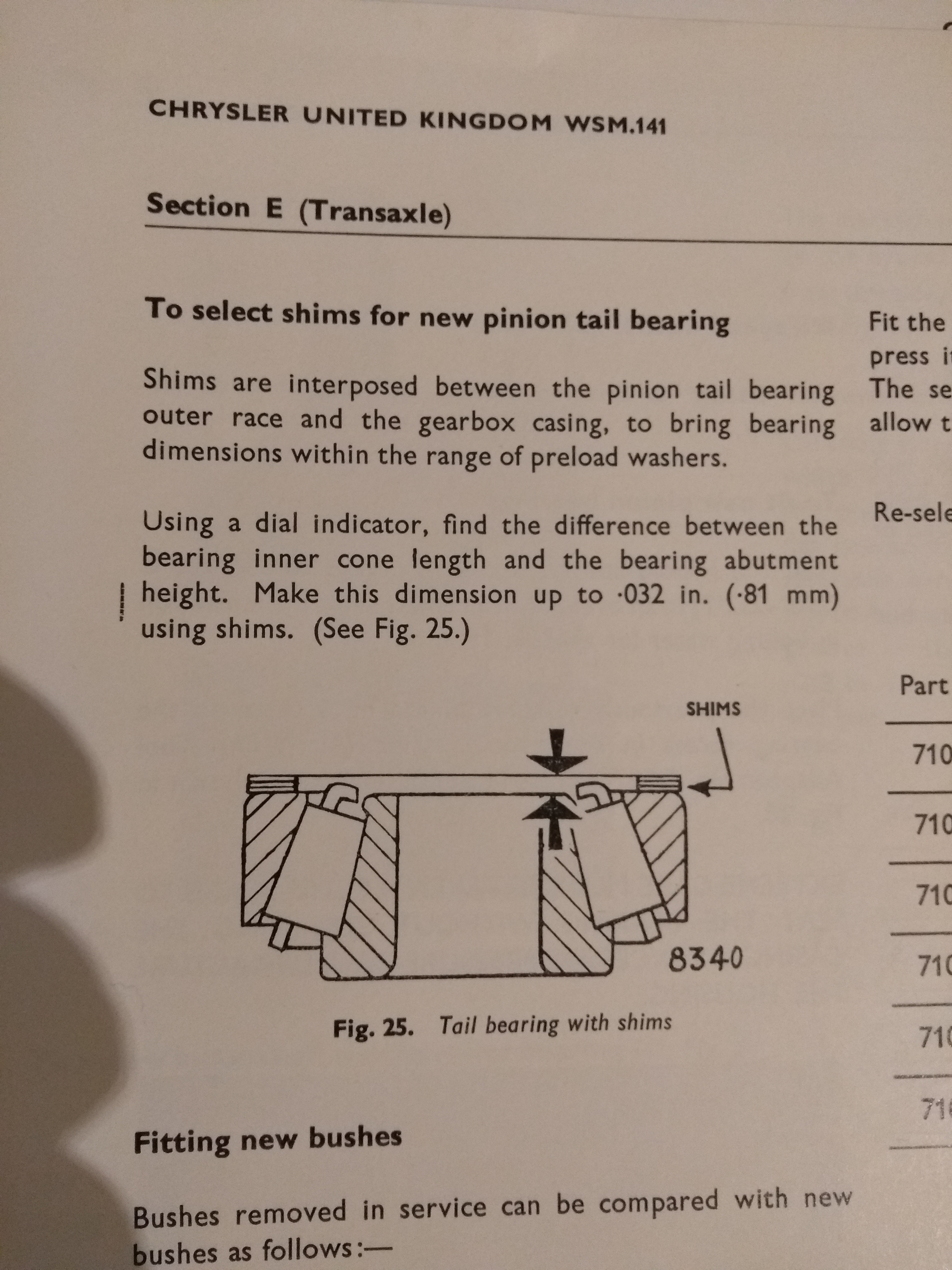 So the conclusion is I will put back what came out for the pinion tail bearing and let you know if it works out when I do the preload.