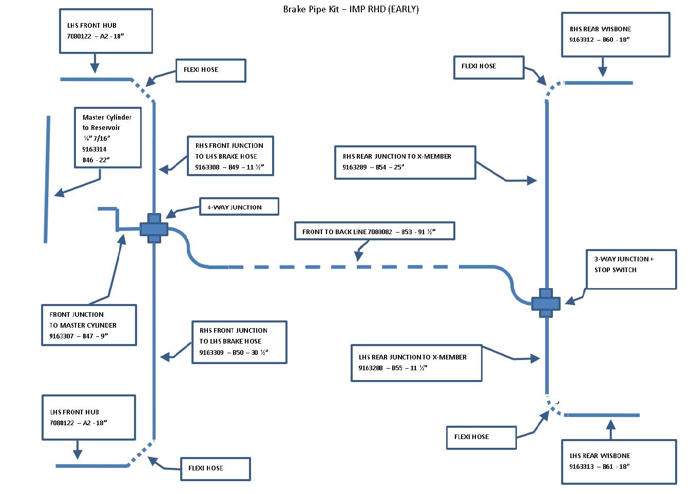 Hillman imp Brake Line Drawing - Non Servos - Parts Manual References -EARLY CAR