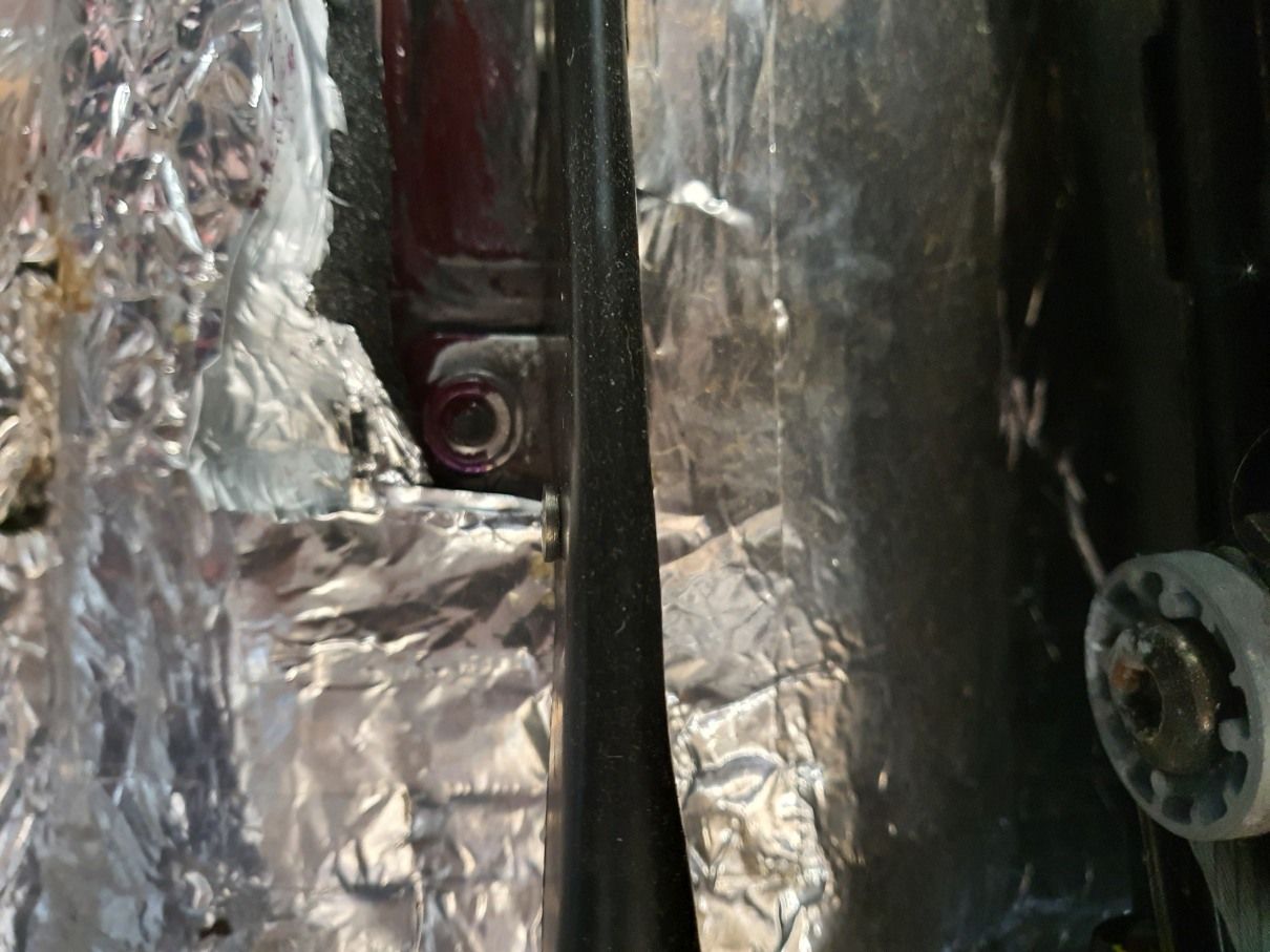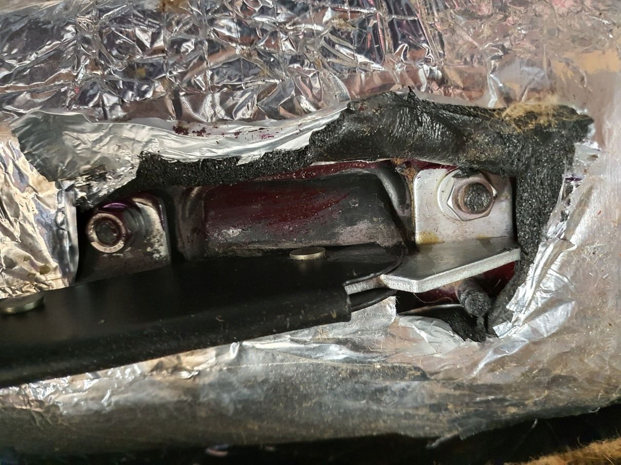 On mine I used the upper hole provided in case I needed to trim the lower part for the gear lever shaft which in the end was not needed and use of the lower point would be a better position leverage wise.