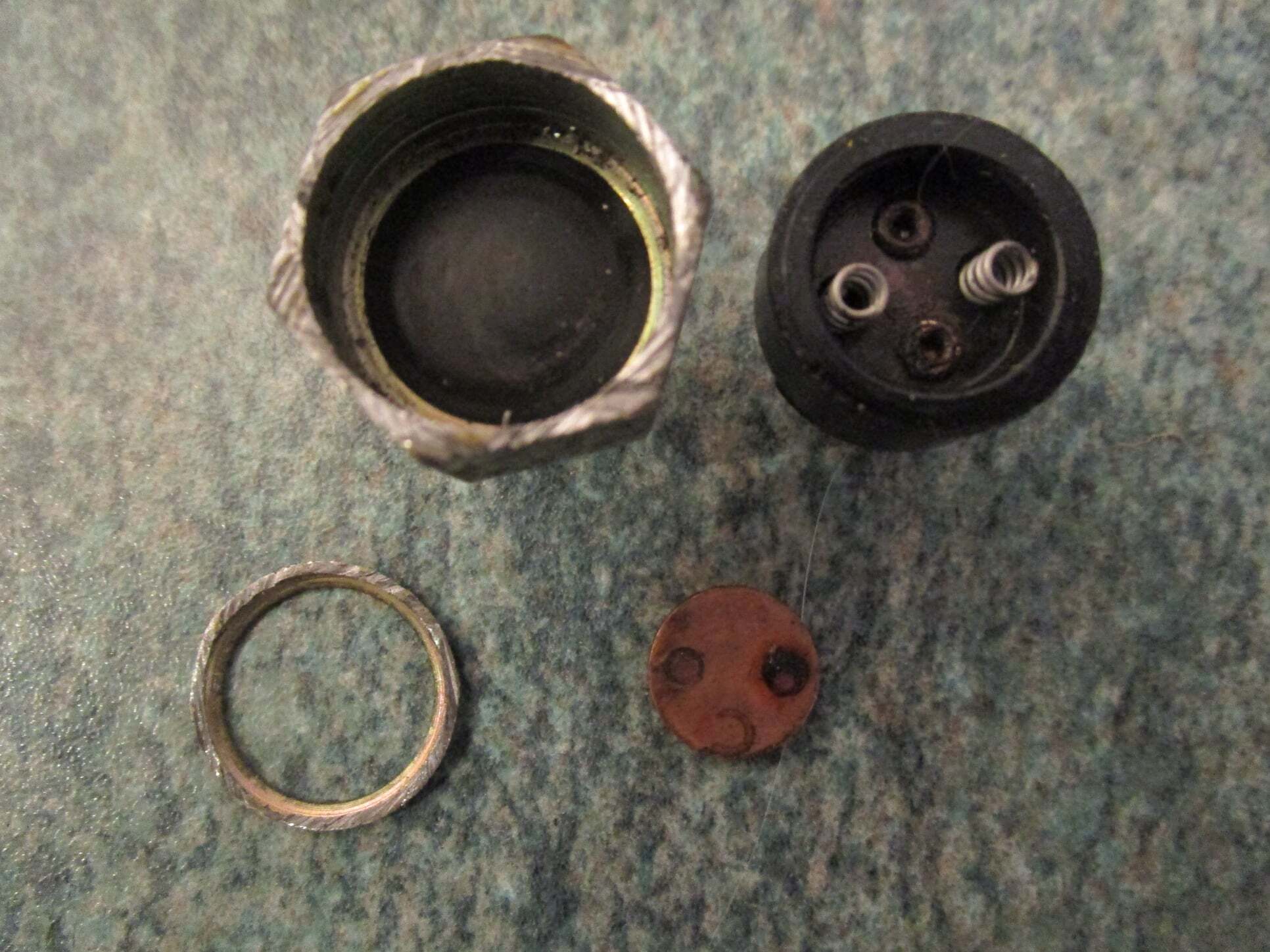 You can see brake fluid has leaked inside the electricery part , the copper contact is burnt especially on one side and the two small contacts on tother end of the spade terminals are black and corroded - springs are the only bits that are still OK .