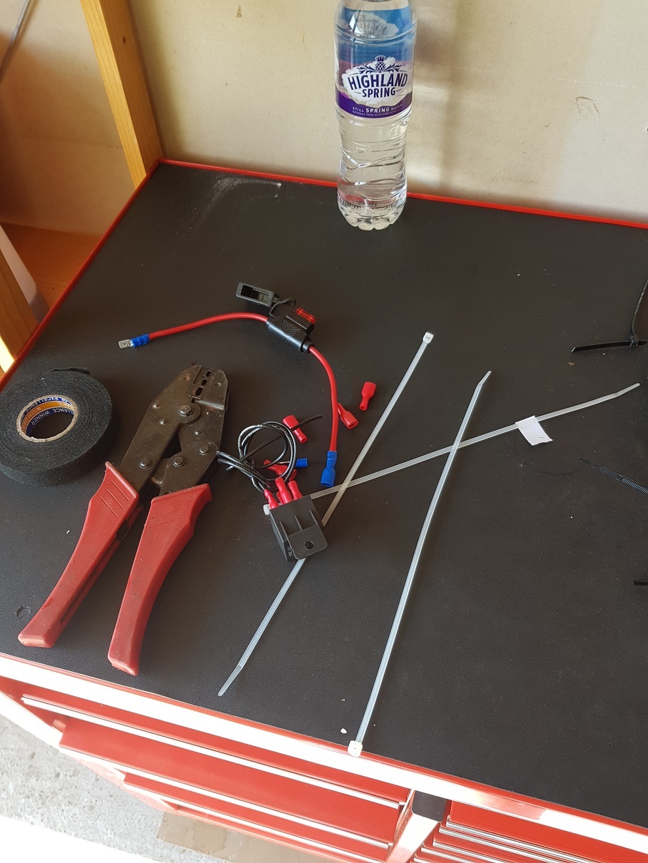 All the usual essentials are taken care of by the bike loom. Need to wire in the heater, fuel pump, water pump and I guess I could always put in some hazards as well as it doesn't have that already.