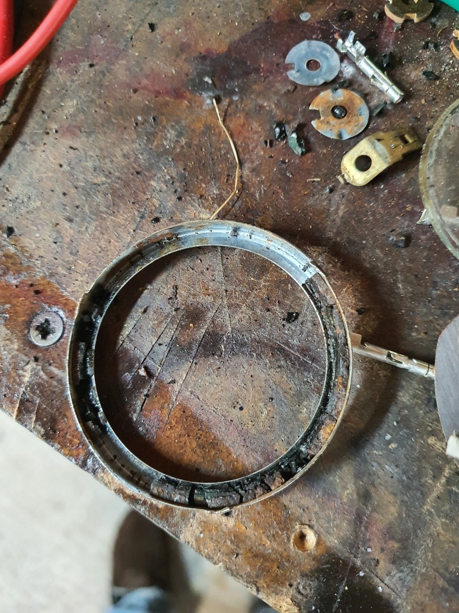 Chrome retaining ring had the black removed from it exposing some nice chrome so that was cleaned and polished and the inner rubber seal which had turned brick hard removed.